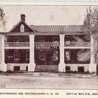 postcard with black-and-white photograph of Spotswood Inn at Spotsylvania Court House