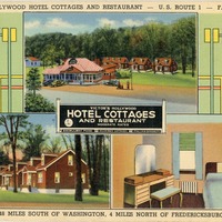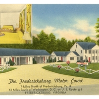 These postcards display motor hotels from the 1950s on a route between Fredericksburg, Virginia, and Washington D.C.