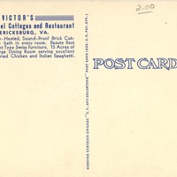 [on front] Victor's Hollywood Hotel Cottages and Restaurant - U.S. Route 1 - Falmouth, VA.