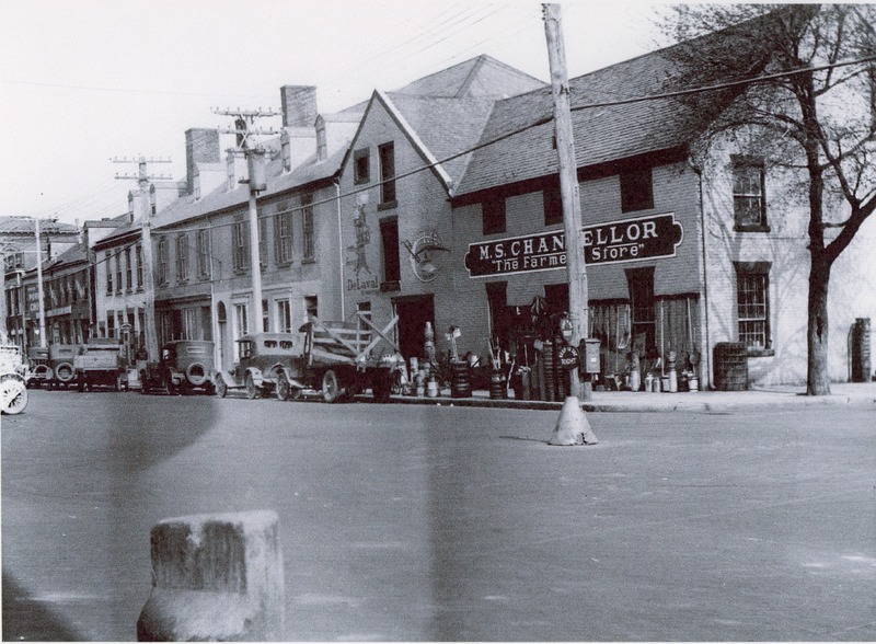 300 block of William Street at Charles Street. Shows the M. S. Chancellor building and also the slave block in the foreground.
